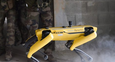 波士顿动力公司:Spot是北美波士顿动力公司的四足机器人,正在法国陆军训练中使用。目前,“机器狗”帮助士兵在活动中进行侦察。